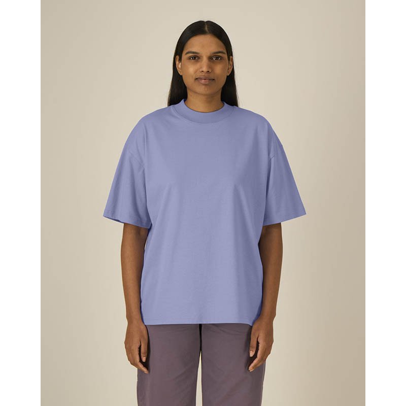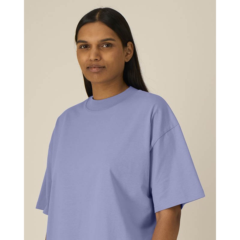 NOVINKA 2024. Relaxed fit T-shirt with dropped shoulders and chest pocket. This item is packed in a compostable polybag. Colors: 100 white, 120 grey melange, 484 dusty red, 514 summer blue, 600 navy, 784 aloe green, 900 black 100% Organic Cotton (GreyMel 88% Organic Cotton 12%, Recycled Polyester) 210 g/m2 Oeko-Tex, OCS, GRS certified XXS-4XL
