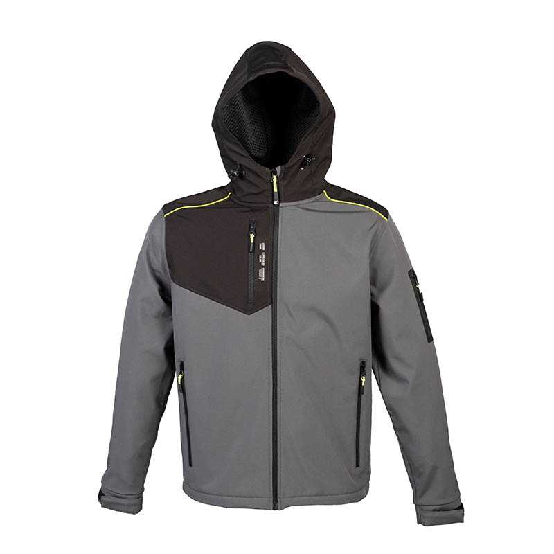"Softshell jacket two layers water resistance - 96% polyester – 4% elastan - Waterproof 6000 mm/H2O - Reflective printing on arms and shoulders - Hood with coulisse - One chest pocket with zip - Two pockets with zip - Elasticized fabric on cuffs - Elastici"