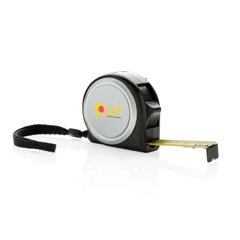 Kompaktný zvinovací meter ABS s príchytkou a pútkom. Zvinovací meter s dĺžkou 5 m a šírkou 19 mm a s háčikom.