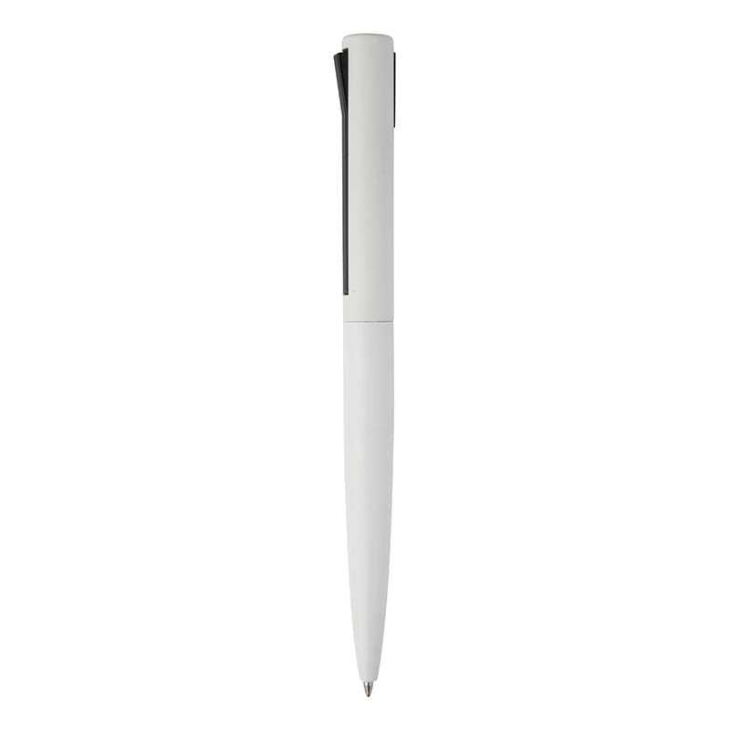 Guľôčkové pero z recyklovaného hliníka v matnej metalickej farbe s hornou časťou z recyklovaného ABS a špeciálnym klipom. S modrou náplňou.