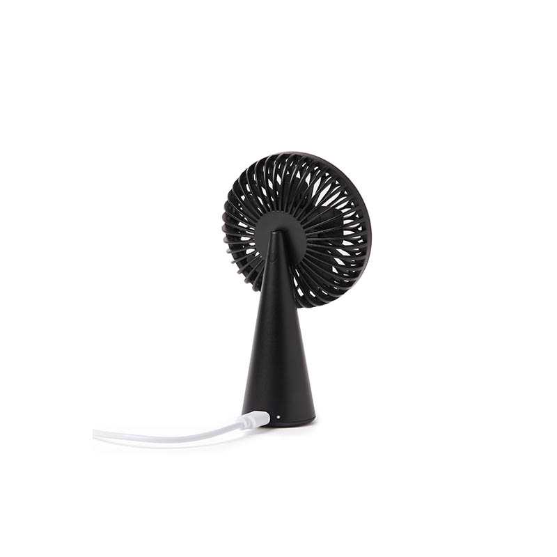 Mini hand-held fan with wireless charge - 3 Airflow speeds - Ultra-quiet blades - Up to 5h battery life - Charging time: 2h - Wirelessly rechargeable / USB-C port - Material: aluminum base & ABS headSuggested branding: laser - pad print