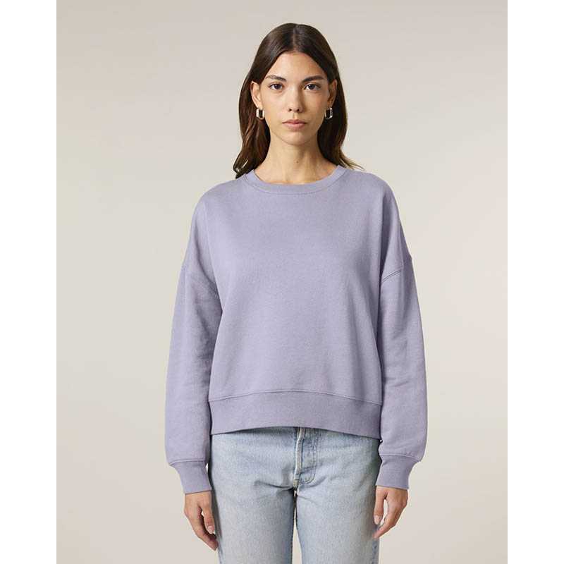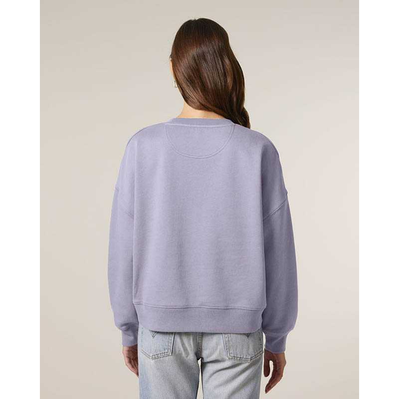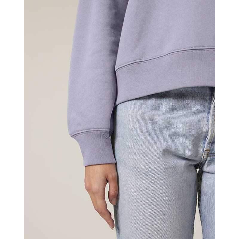 Sweatshirt with round neck and brushed lining. 2x2 ribbing on the collar edge, end of sleeves and bottom hem. Decorative seams in overlock knit set in a tone-in-tone feature. Ladies fit.