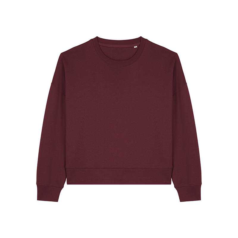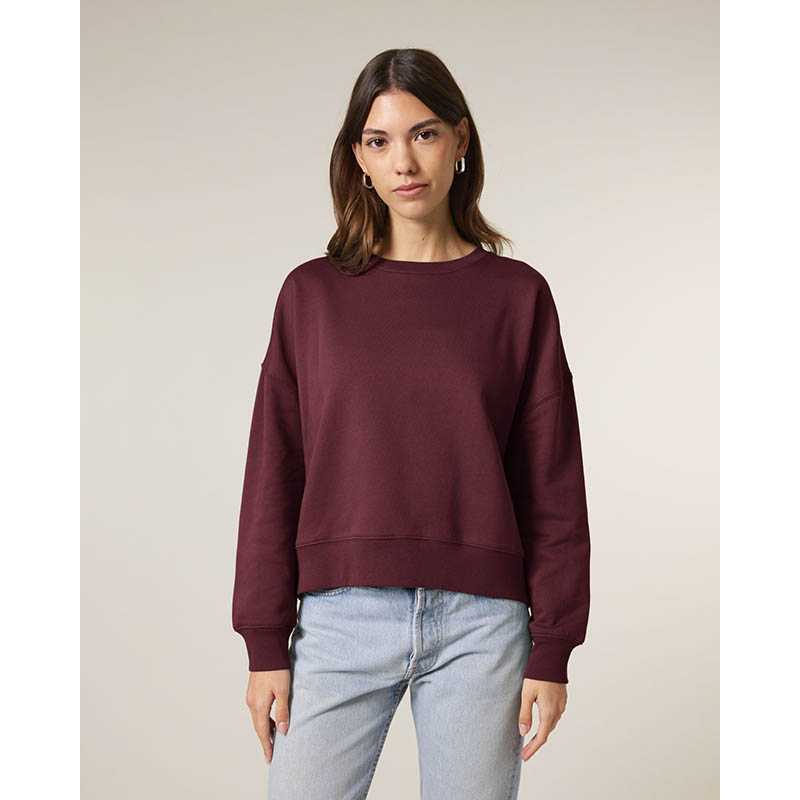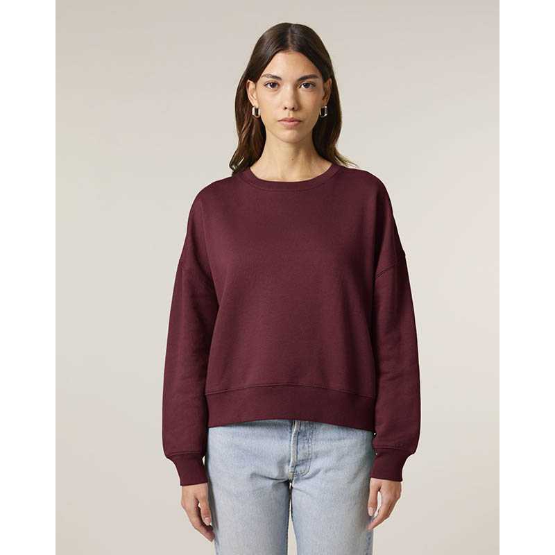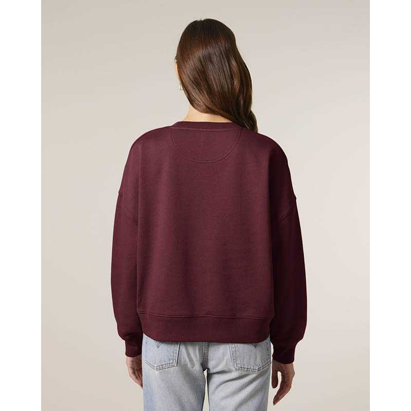 Sweatshirt with round neck and brushed lining. 2x2 ribbing on the collar edge, end of sleeves and bottom hem. Decorative seams in overlock knit set in a tone-in-tone feature. Ladies fit.