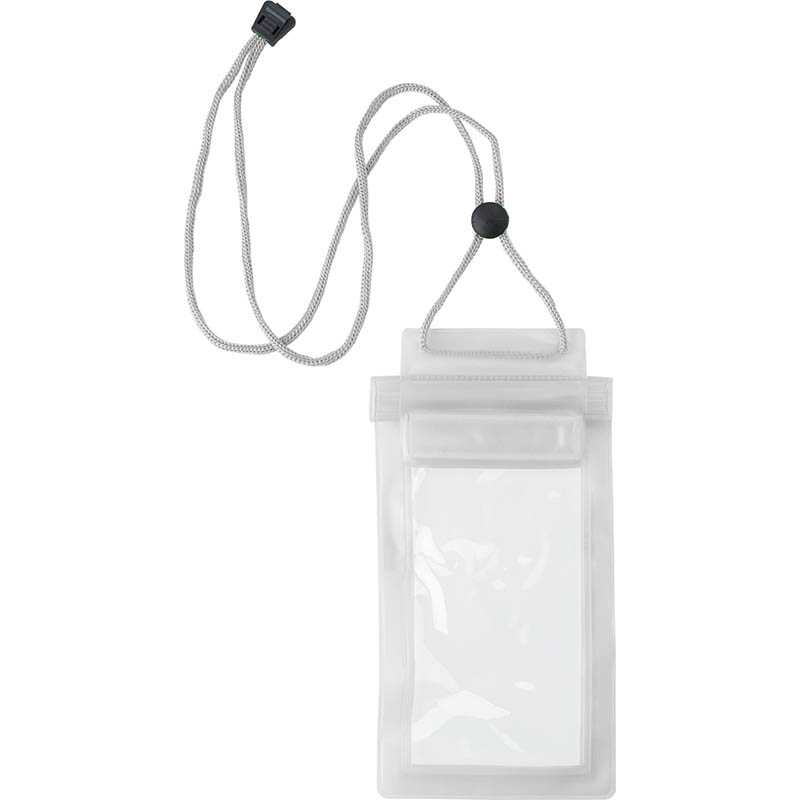 Plastic water resistant, protective pouch for mobile devices, with closure strip. Including cord (with safety closure) approximately 46 cm long. You can operate the screen of your phone as normal thanks to the special material of the cover.