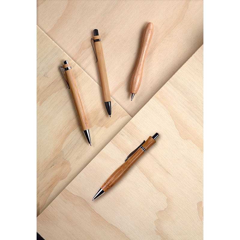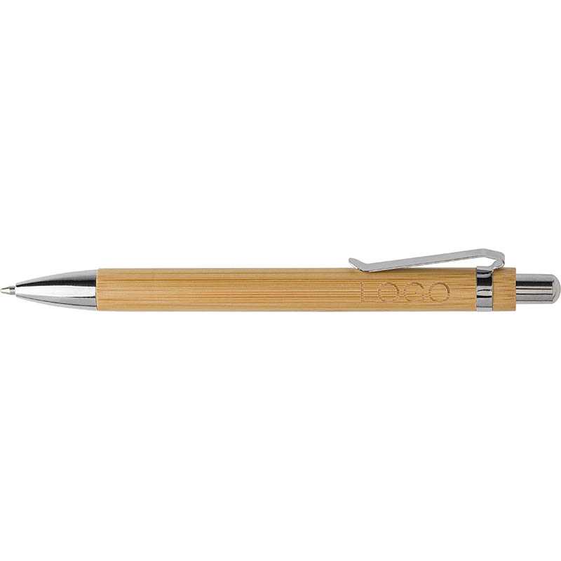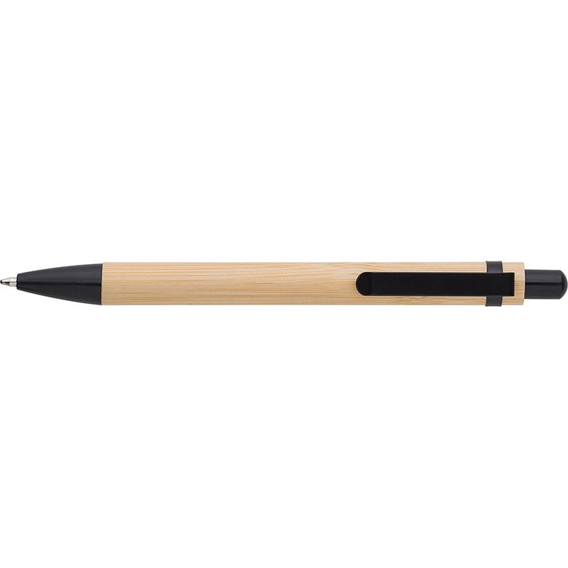 Bamboo ballpen with metal clip. Blue ink.