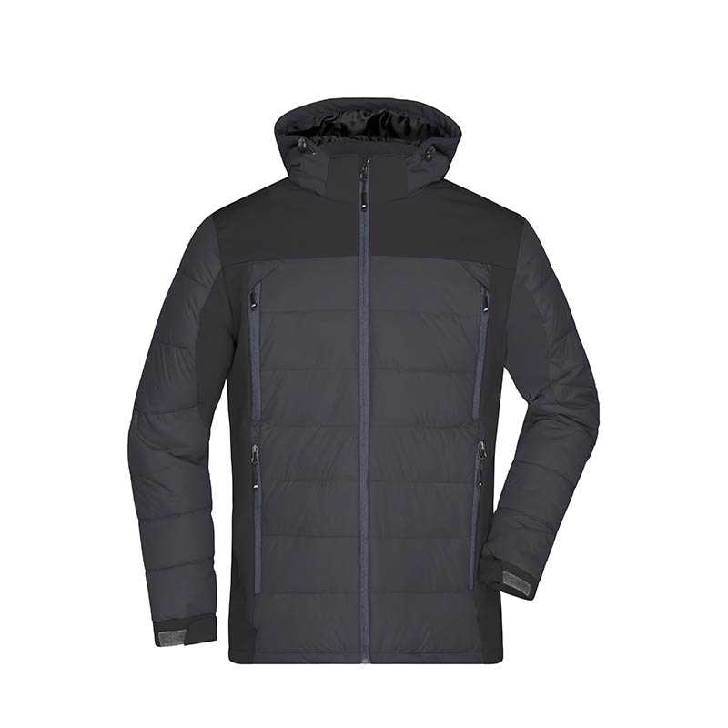 Pánská bunda James & Nicholson Mens Outdoor Hybridjacket..Thermo bunda v atraktivním mixu materiálů..Vnější látka: 95% polyester, 5% elastan.Vnější látka 2: 100% polyamid.Podšívka: 100% Polyester.Polstrovaní: 100% Polyester.Polstrovaná záda, elastické sof