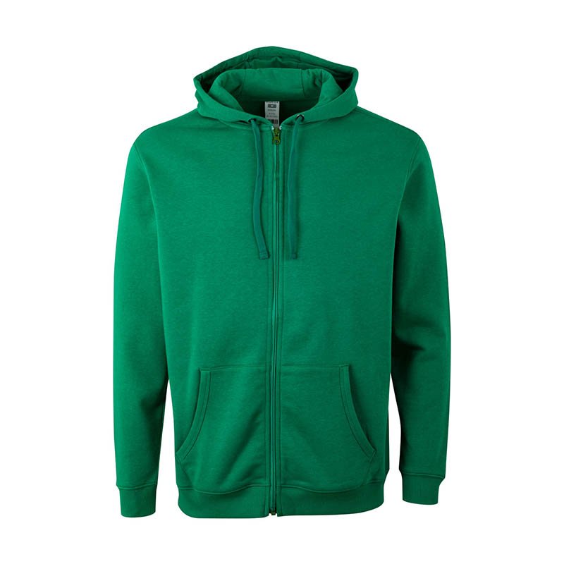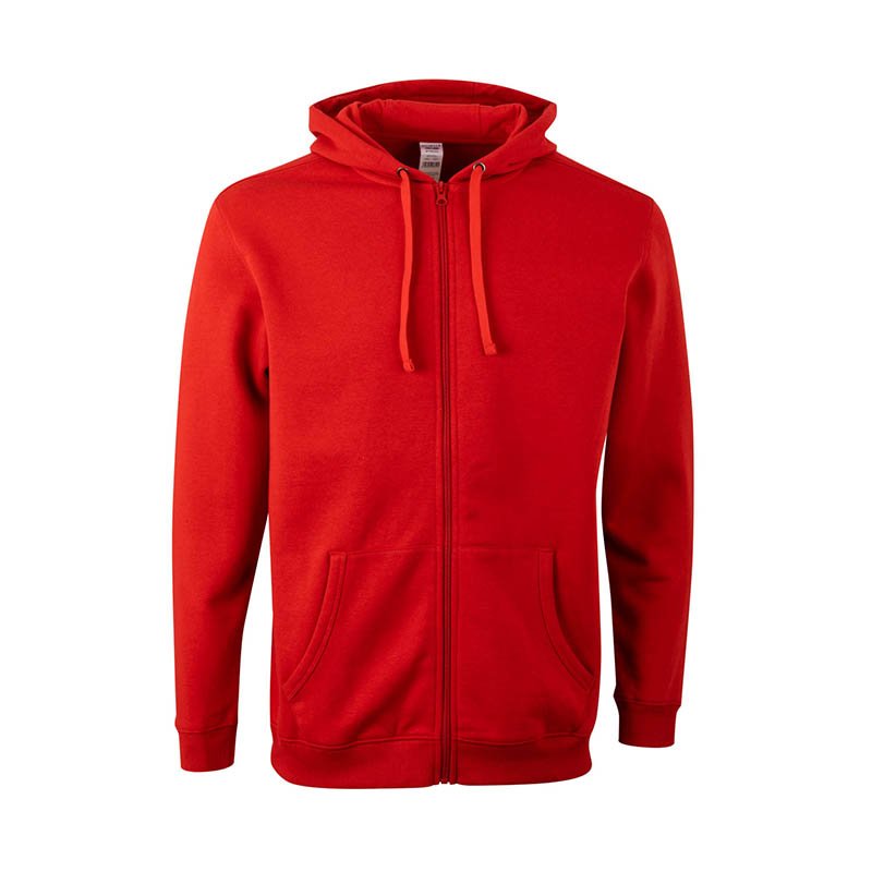 Full zip hooded UNISEX Sweatshirt. Brushed Fleece. 60% Cotton - 40% Polyester. 270 g/m2 Brushed interior, soft comfortable and warm 3 panel hood lined with single jersey Nylon zipp
