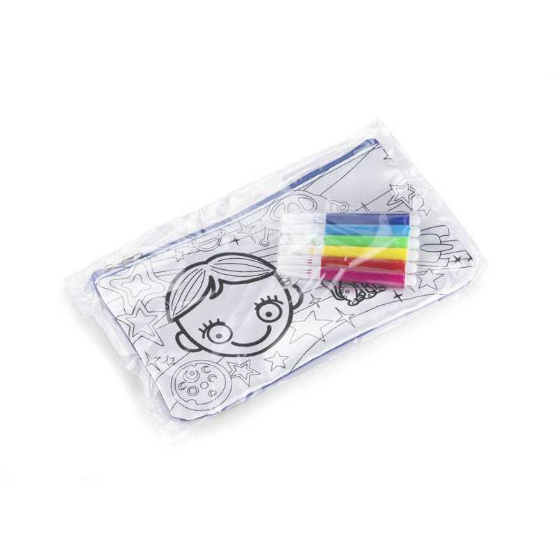 Pouzdro na tužky s vzorem pro kreslení. Dárek, který zahrnuje a přináší radost. Součástí je 6 barevných fixů. Jednokomorové pouzdro na tužky s zip-lock.