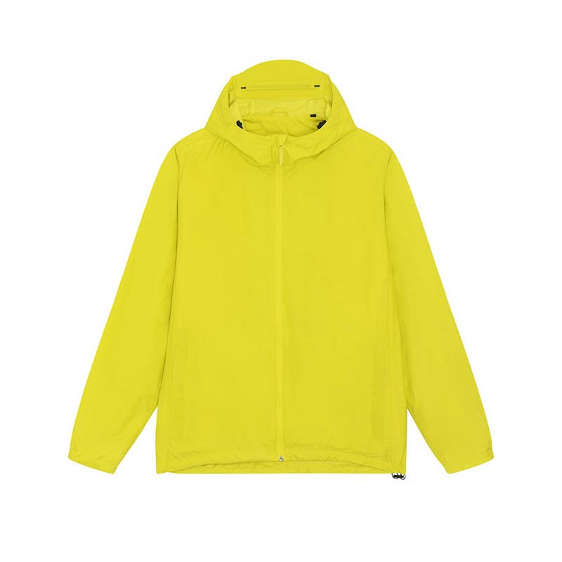 100 % polyamid.Priedušnosť 5 000 g/m2/24 h a vodoodolnosť 3 000 mm.Podlepené švy.Predný zips po celej dĺžke.2 predné vrecká na zips.1 vnútorné vrecko.Kontrastná polyesterová podšívka.Nastaviteľná kapucňa s podšívkou zo sieťoviny.Zipsový prístup na ozdobu na hrudi a na spodnom okraji.