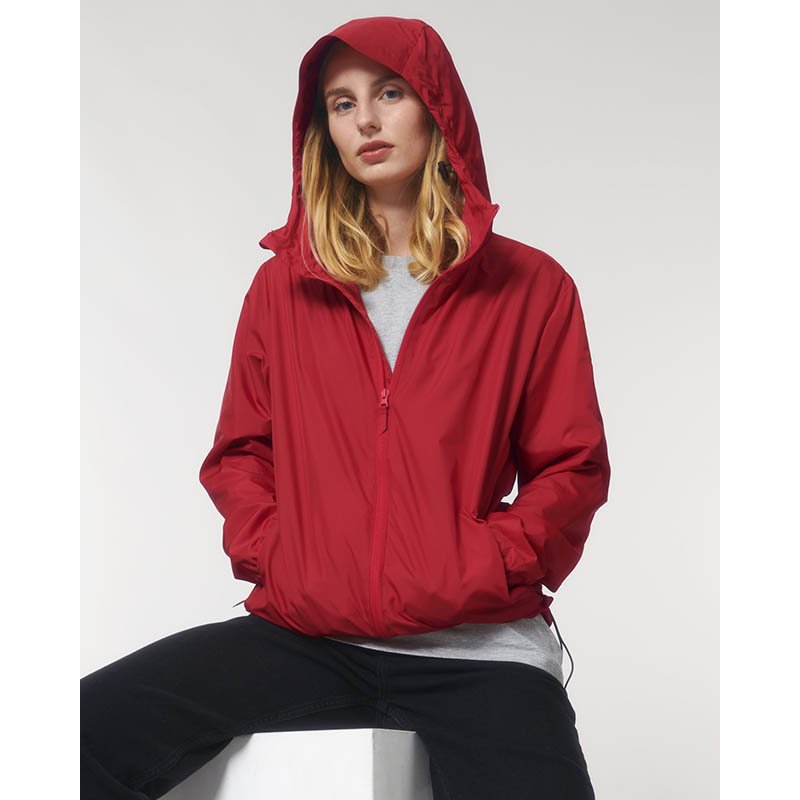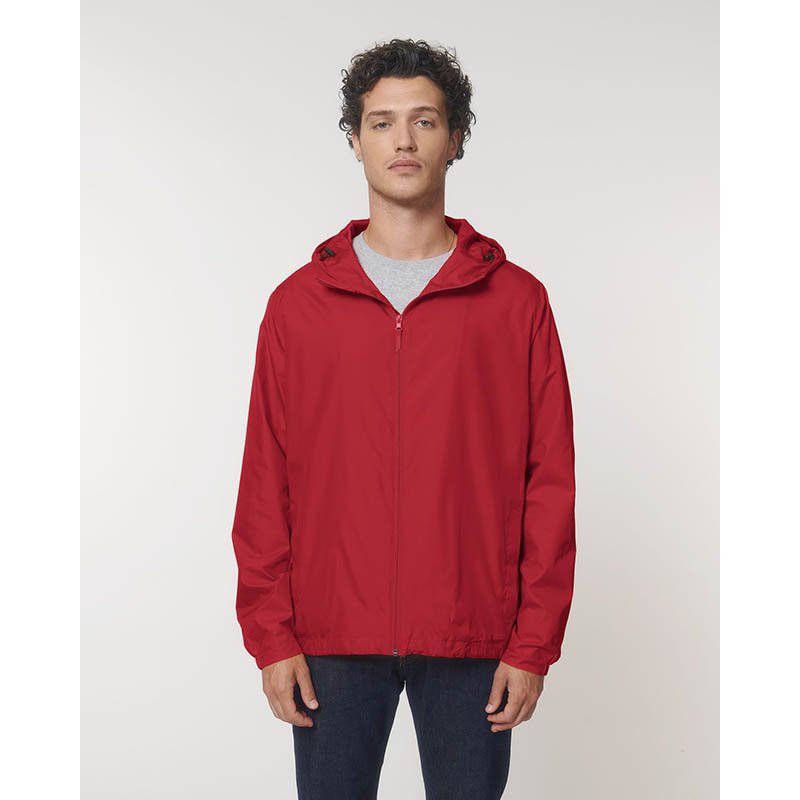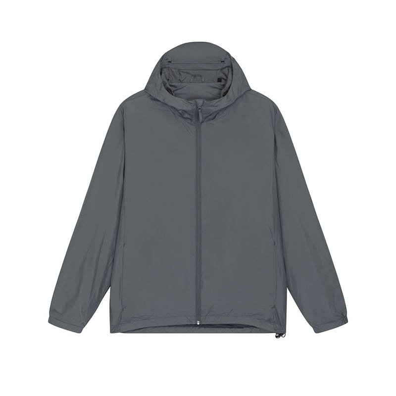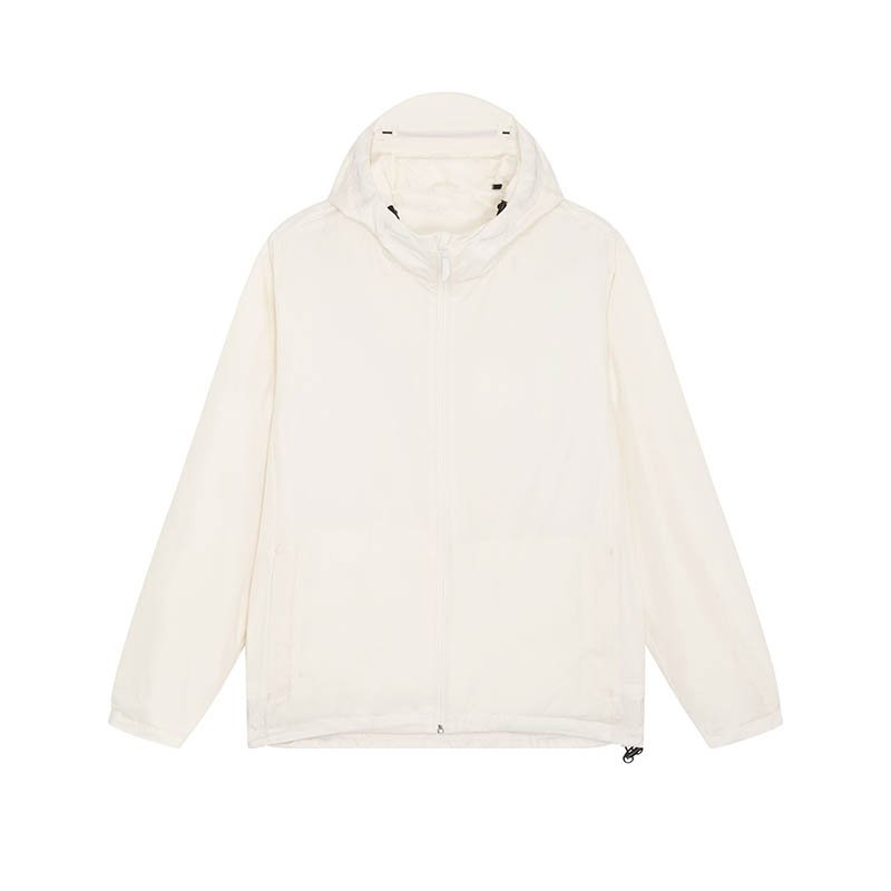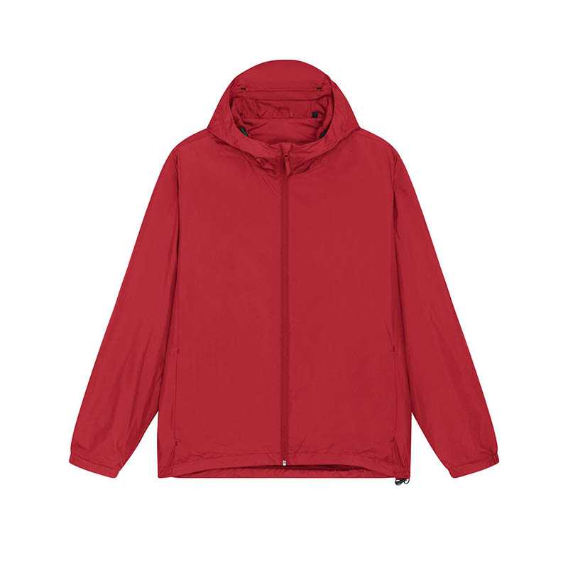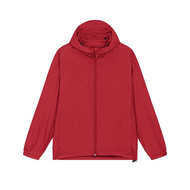 100 % polyamid.Priedušnosť 5 000 g/m2/24 h a vodoodolnosť 3 000 mm.Podlepené švy.Predný zips po celej dĺžke.2 predné vrecká na zips.1 vnútorné vrecko.Kontrastná polyesterová podšívka.Nastaviteľná kapucňa s podšívkou zo sieťoviny.Zipsový prístup na ozdobu na hrudi a na spodnom okraji.
