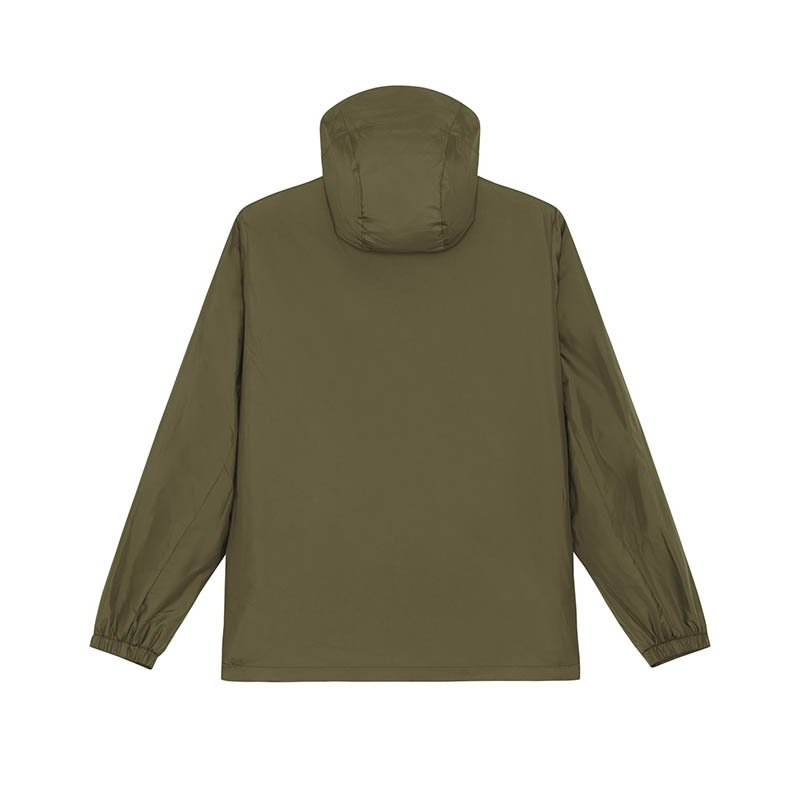 Set-in sleeve Longer back length with curved hem for protection Bottom hem with adjustable plastic stopper and elastic cord Sealed hood visor Double layered hood with adjustable plastic stopper and elastic cord on inside Reverse nylon zip at center fro
