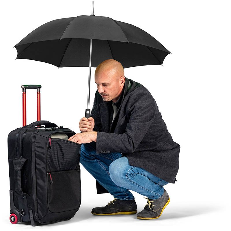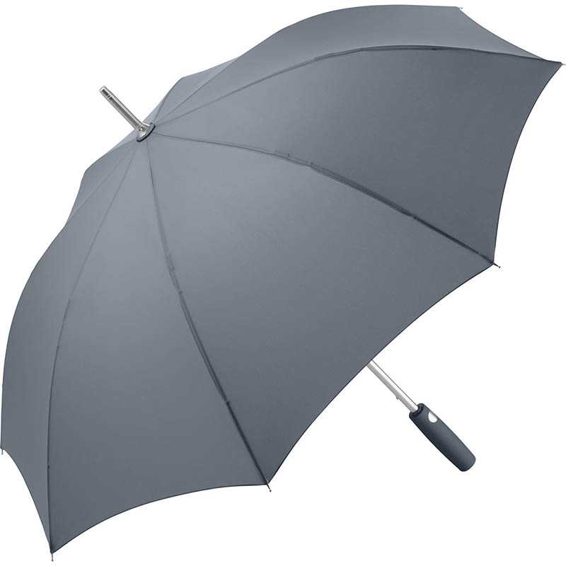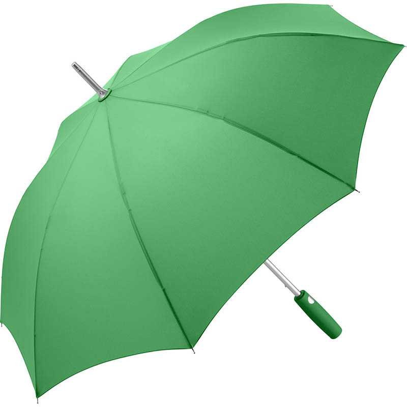Convenient automatic function for quick opening, high-quality Windproof PLUS system for maximum frame flexibility in stormy conditions, flexible fibreglass ribs, lightweight but sturdy aluminium frame, attractive Soft-Touch handle with silver push-button and promotional labelling option. Also available as mini umbrella (art. 5565, 5460) and golf umbrella (art. 7580).