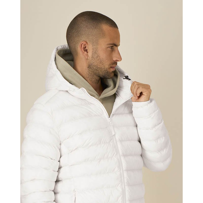 Jacket in waterproof stretch fabric - 94% polyester - 6% spandex with TPU membrane - Water resistance 4000 mm/H2O - Breathability 1000 g/m2/24h - Soft polyester padding (feather effect) - Soft 320T polyester lining - Windproof high collar with zip to "stretch" the hood - Padded hood - Laser cut waterproof zippers - Two large external pockets with zip - An internal zipped wallet pocket - Cuffs with adjustable velcro closure - Stretch fabric inside the cuffs for windproof protection