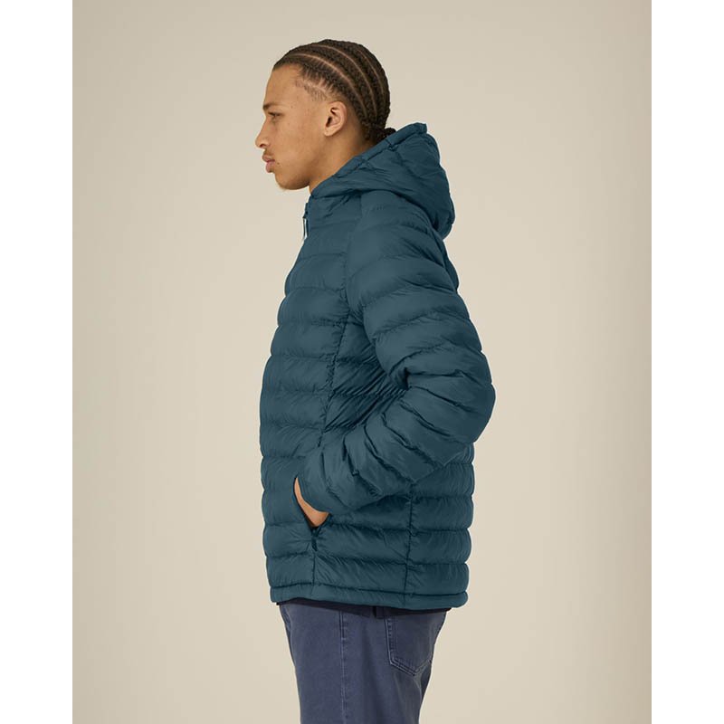 GRS ripstop polyester 360T potažený PU. Lehká zateplená bunda. Recyklovaný polyester a zateplená prvotřídním polstrováním DuPont™. Ripstopová tkanina 1x1 v matném provedení. Zip SBS. Vnitřní kapsy. 2 velké přední kapsy. Neviditelné elastické manžety. Nast