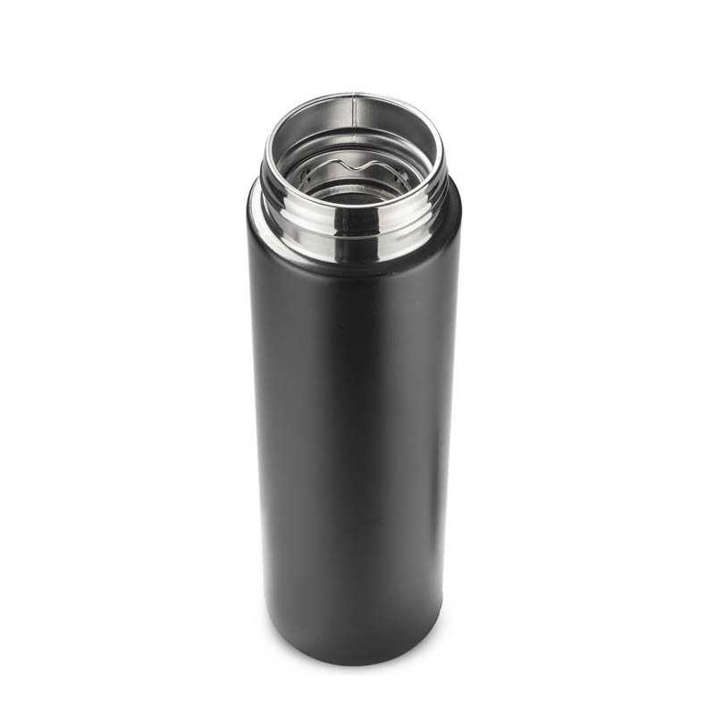 Termální láhev THERMO je velmi zajímavá. Kombinuje klasickou funkci termosky a elektroniky v podobě dotykového digitálního teploměru zabudovaného do víčka. Stačí otočit lahvičku dnem vzhůru na 10 sekund a přečíst nejpřesnější teplotu nápoje. Navíc se zobrazí ikona kapiček, která mění barvu v závislosti na teplotě: červená, když je nápoj horký, zelená, když je bezpečné pít, a modrá, když je studená. Díky vakuu mezi stěnami udržuje teplotu asi 13 hodin. Vyrobeno z nerezové oceli 304. Uvnitř je sítko, díky kterému můžeme vařit čaj.