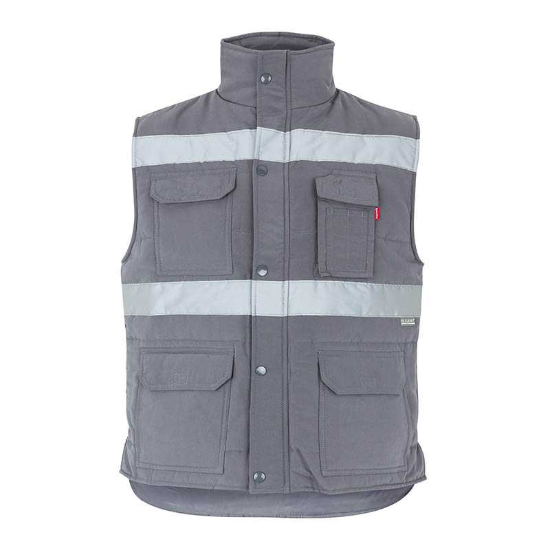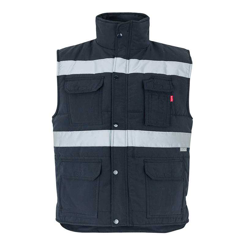 "Soft shell waistcoat waterproof and breathable - 92% Polyester - 8% elastan - Waterproof-6000 mm/H2O - Resistance to moisture g/m2/24h 4000 - Reflective thin band - Covered zippers - One chest pocket with zip and fold-away badge-pocket - Two outside pocke"