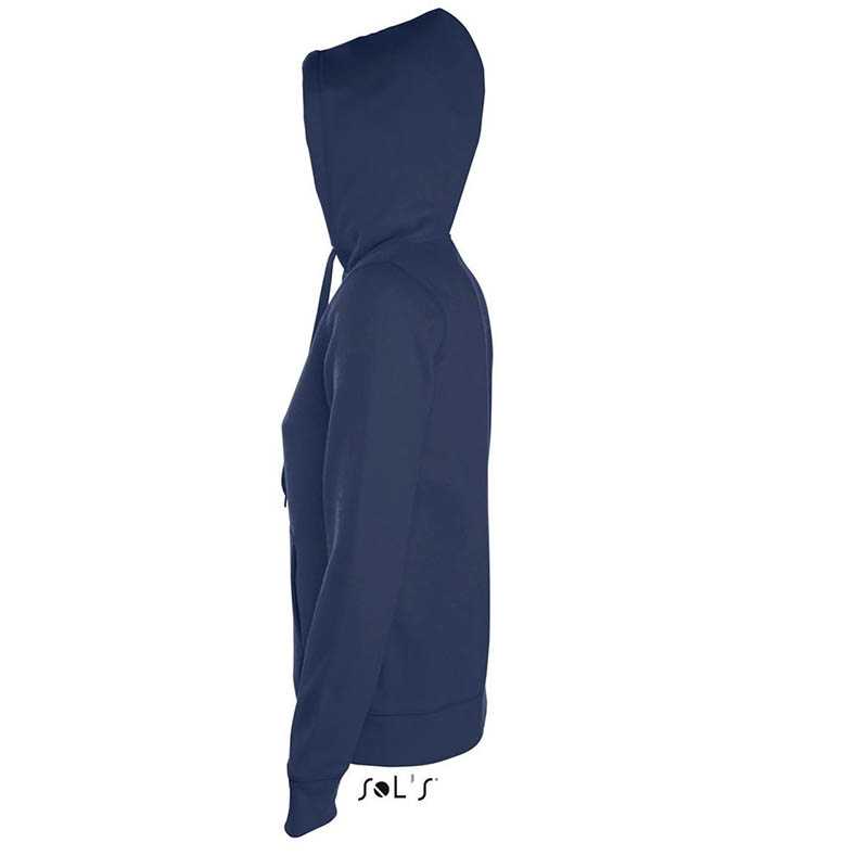 Kvalita.50 % prstencovo spriadaná bavlna – 50 % polyester.Štýl.Elastanový rebrovaný spodný okraj a manžety.Vsadené rukávy.2 klokanie vrecká.Podšitá kapucňa so sťahovacou šnúrkou tón v tóne.Skrytý zips.Priliehavý strih.Strihané a šité.