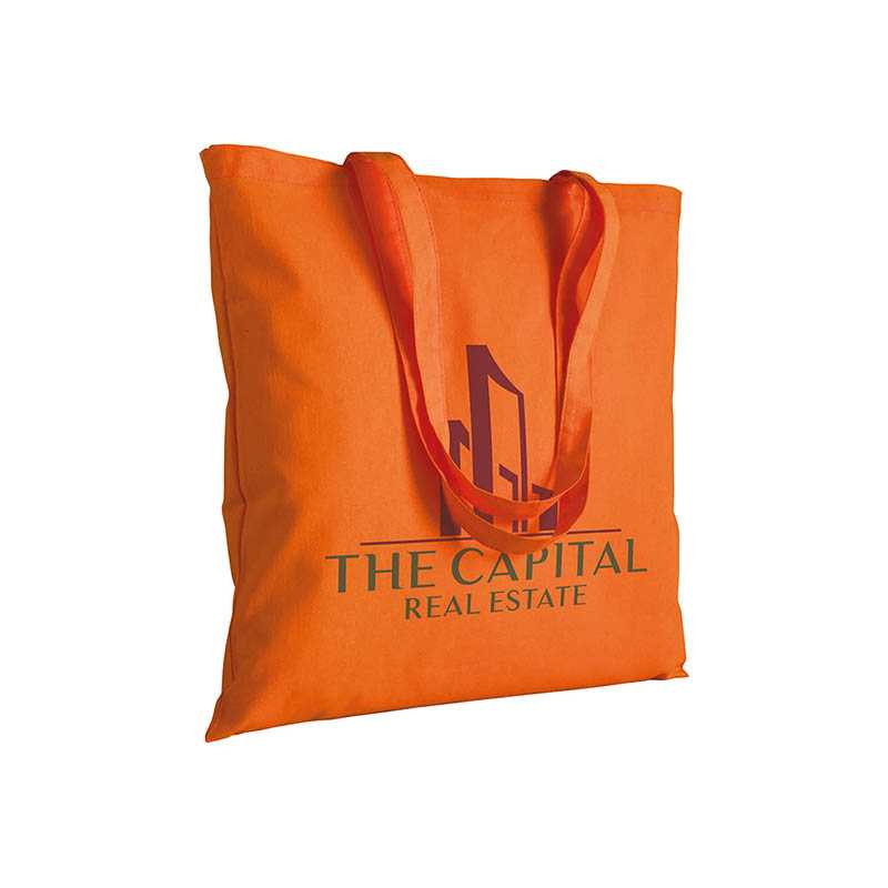 Skládací nákupní taška ze 100 gr/m2 bavlny s krátkými uchy. Dodáváme nesložené.
