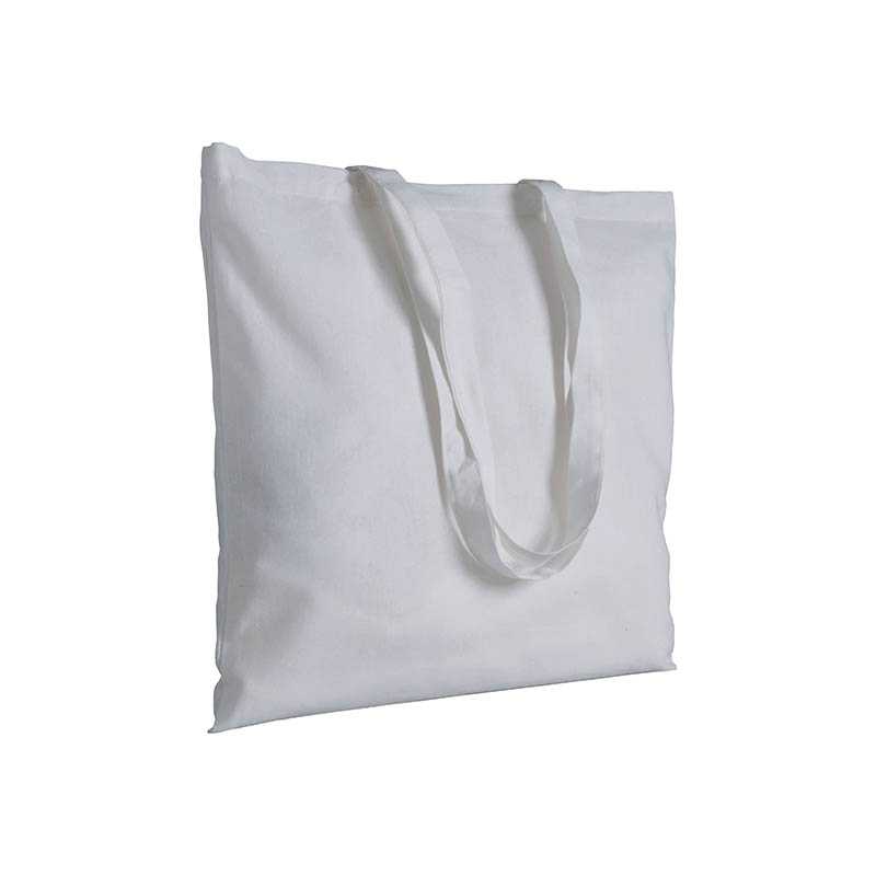 Skládací nákupní taška ze 100 gr/m2 bavlny s krátkými uchy. Dodáváme nesložené.