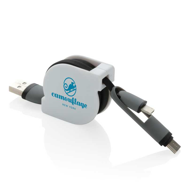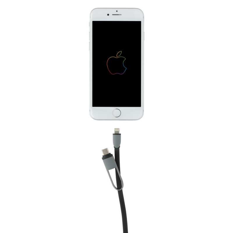 Kompaktný nabíjací kábel 3 v 1 s konektormi USB typu C a dvojitým pre zariadenia s iOS alebo Android využívajúce micro USB. Vďaka svinovacímu mechanizmu je 1m dlhý kábel skladný a vhodný na cesty. Puzdro z ABS, bužírka kábla z TPU. Pre nabíjanie aj synchronizáciu dát.