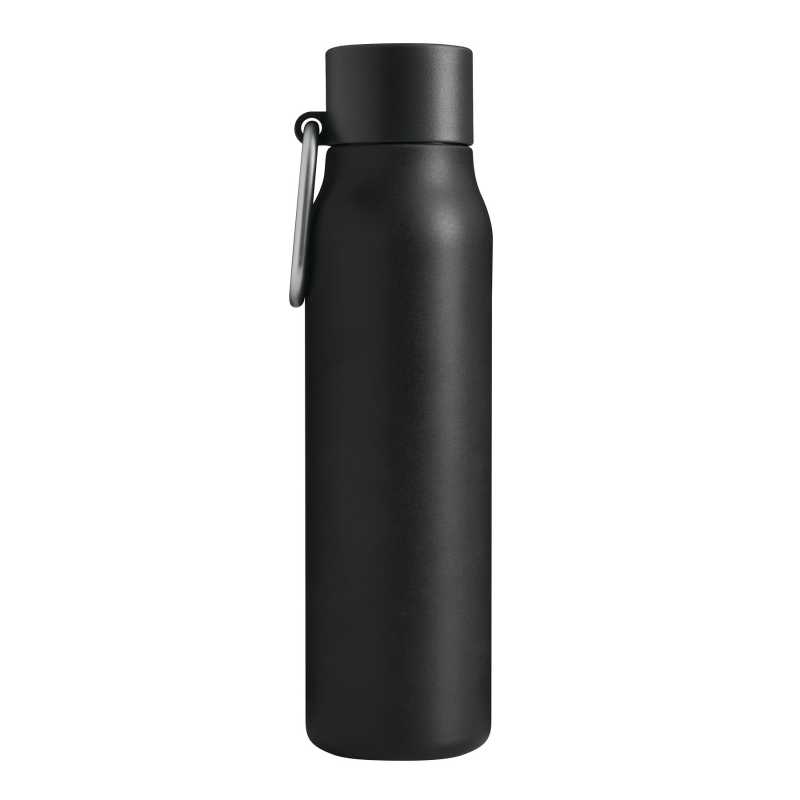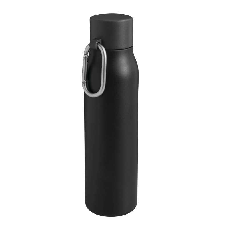 Dvojstenná vákuová fľaša z nehrdzavejúcej ocele s matným povrchom a uzáverom s otočným mechanizmom, vrátane karabíny. Vhodná ako termoska. Objem 750 ml.