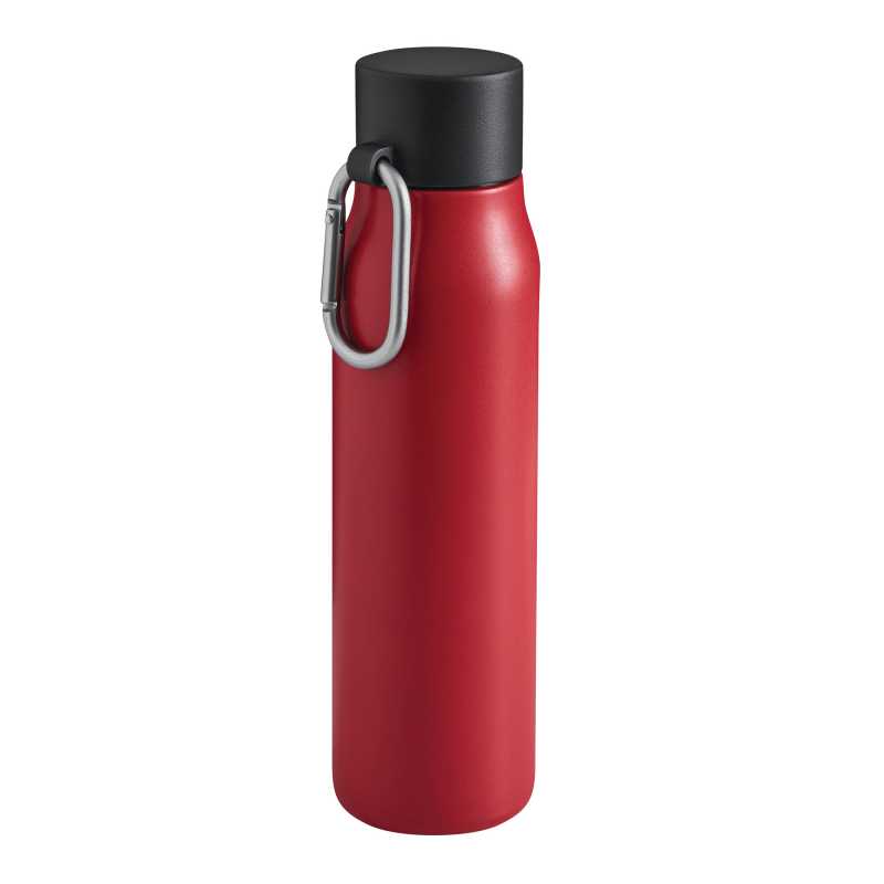 NOVINKA 2025 XMASS. Vacuum drinking bottle ALPINE PEAK, double-walled: inside made of recycled stainless steel, outside made of stainless steel, plastic lid with secure screw cap, silicone sealing ring, and carabiner (the carabiner is NOT suitable for cli