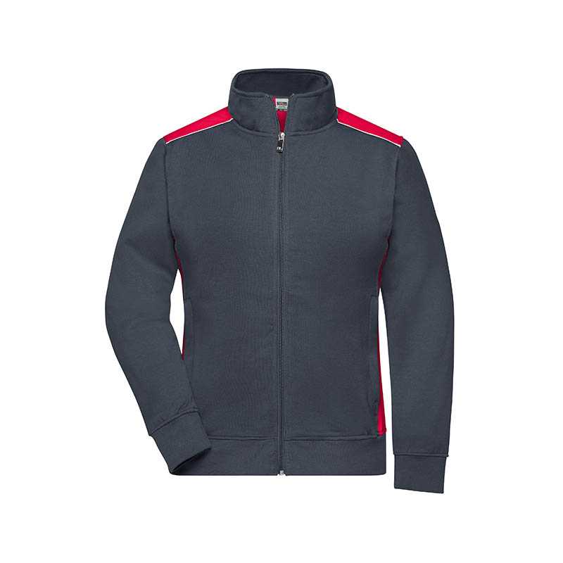 Sweatshirt jacket. Coil zip in contrast colour at front and pockets. Female style with welted pockets and ribbed collar. Oeko-tex. • 60% cotton, 40% polyester • 280 g/m2 • 400 red, 600 navy, 632 blue, 120 grey melange (85% bawełna, 15% wiskoza), 728 green, 900 black, 935 grey, 100 white • XS–XXL