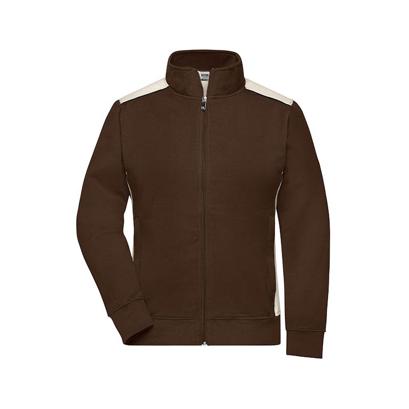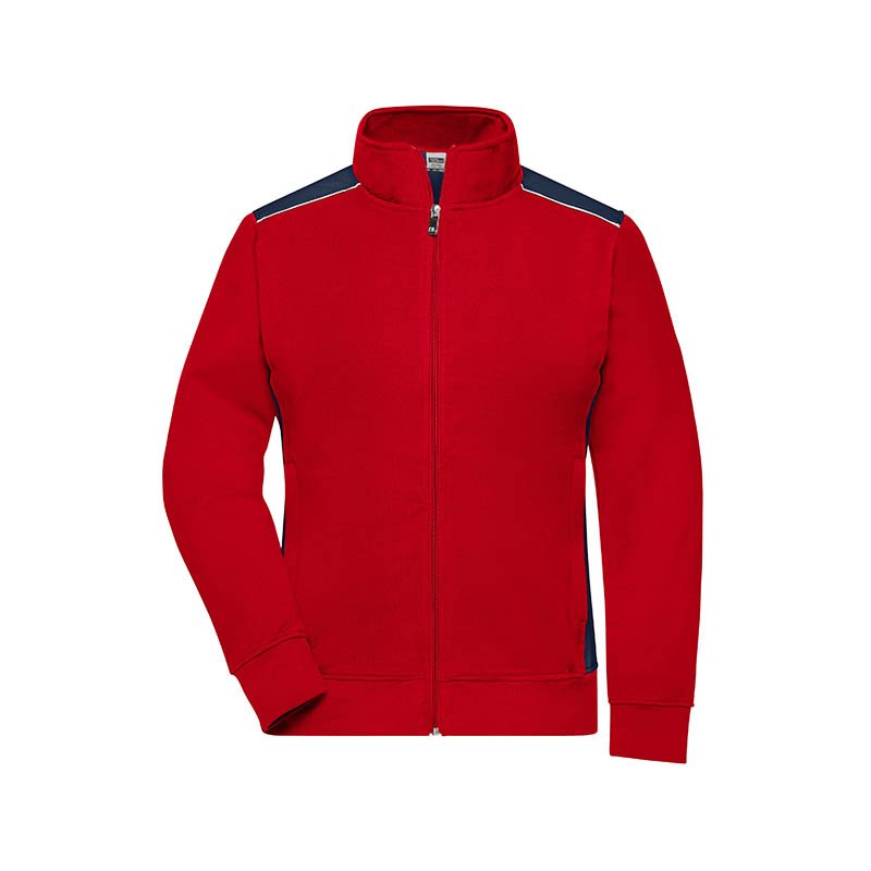 Sweatshirt jacket. Coil zip in contrast colour at front and pockets. Female style with welted pockets and ribbed collar. Oeko-tex. • 60% cotton, 40% polyester • 280 g/m2 • 400 red, 600 navy, 632 blue, 120 grey melange (85% bawełna, 15% wiskoza), 728 green, 900 black, 935 grey, 100 white • XS–XXL