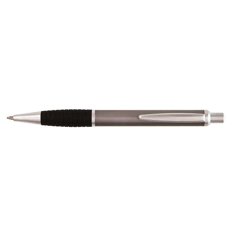 Aluminium snap pen with rubberised grip with 2 chrome trim rings