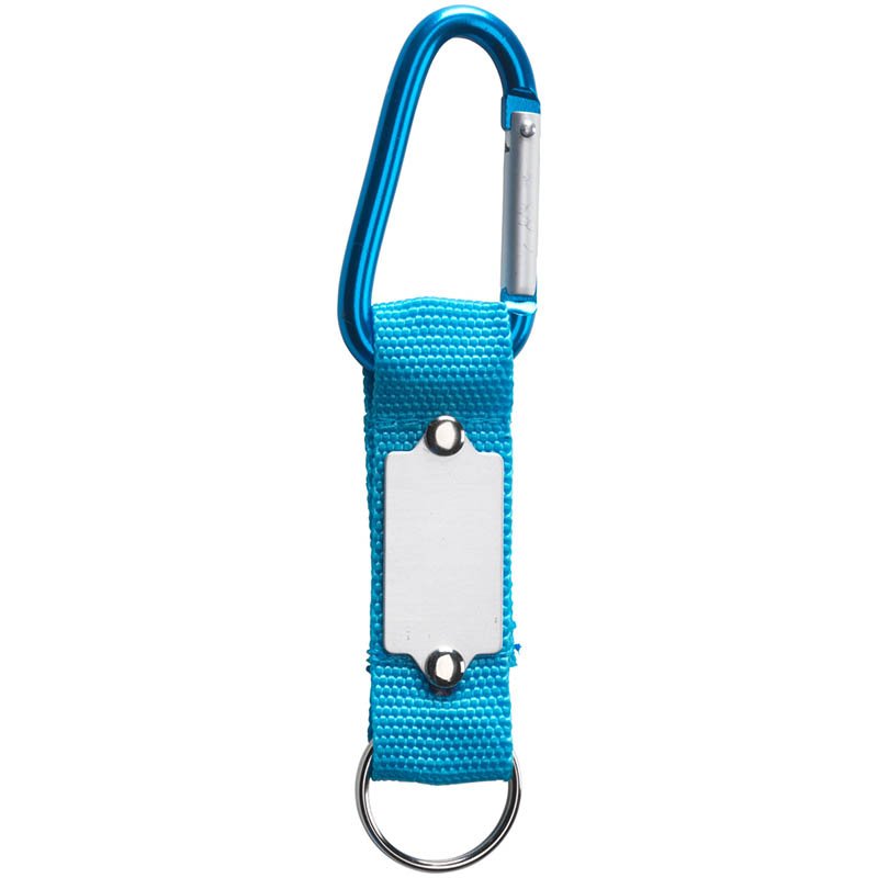 Carabiner hook with woven nylon strap and sturdy keyring.