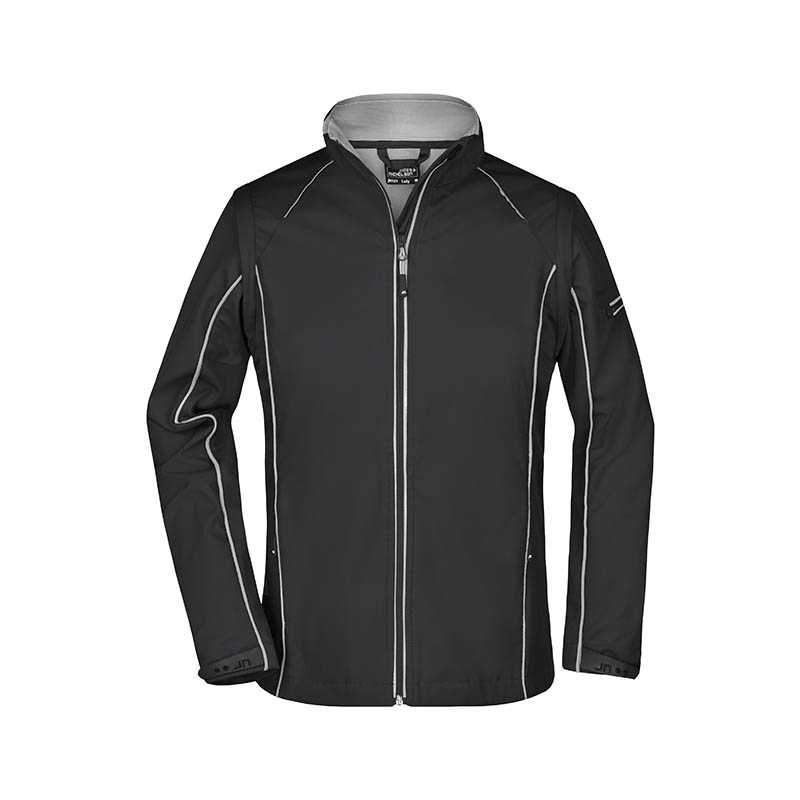 3vrstvový softshell s membránou, ľakho vypasovaný strih, celozapínací reverzný špirálový zips s krytkou brady, odnimateľná kapucňa, lemy rukávov nastaviteľné suchým zipsom, dolný lem na stiahnutie elastickou šnúrkou, vrecká s reverzným špirálovým zipsom,