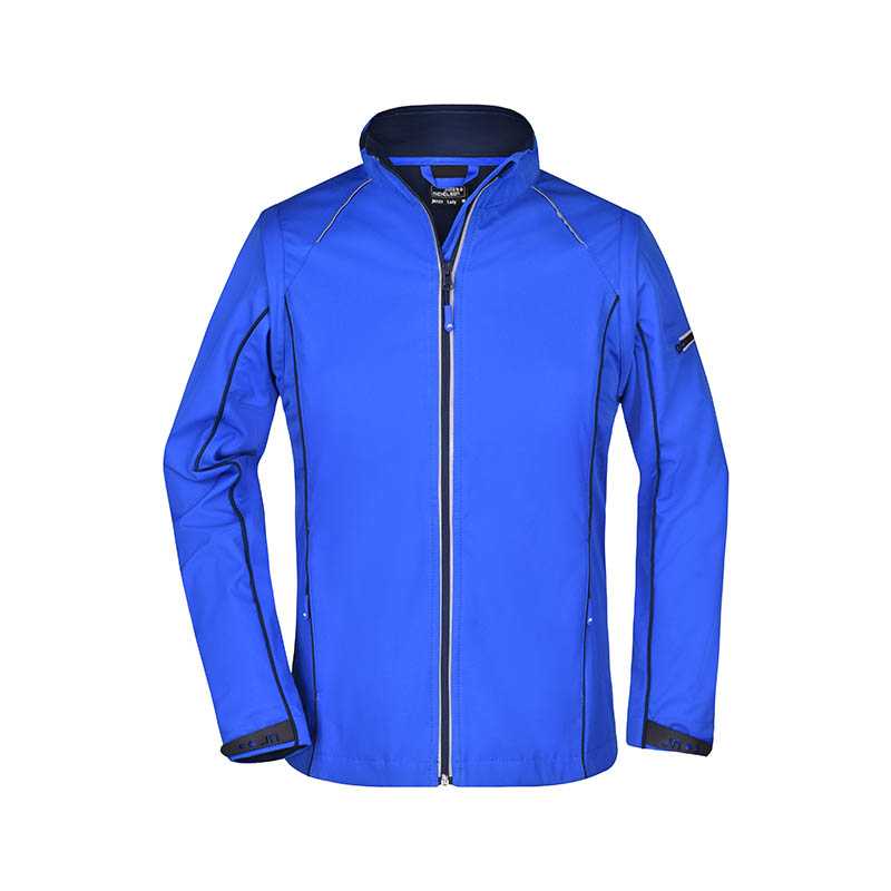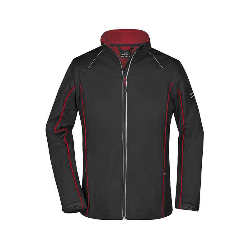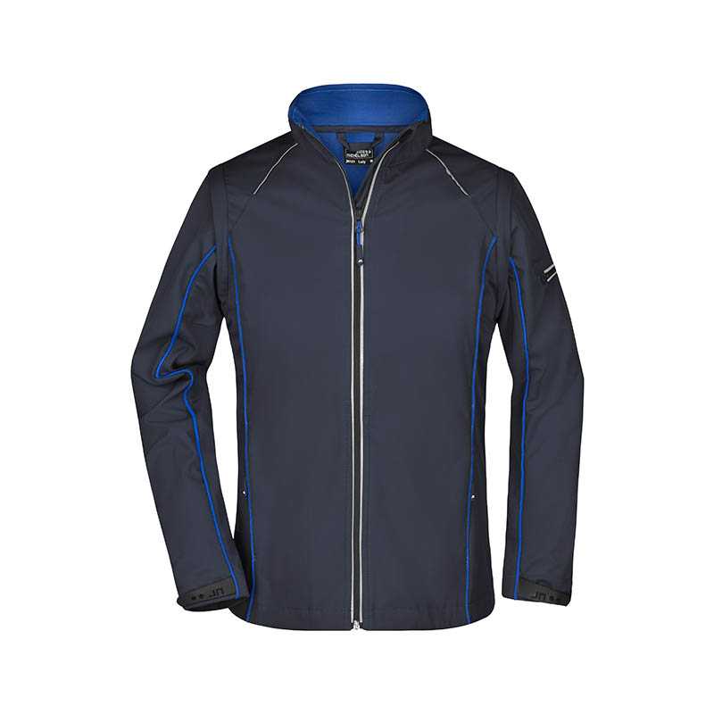 3vrstvový softshell s membránou, ľakho vypasovaný strih, celozapínací reverzný špirálový zips s krytkou brady, odnimateľná kapucňa, lemy rukávov nastaviteľné suchým zipsom, dolný lem na stiahnutie elastickou šnúrkou, vrecká s reverzným špirálovým zipsom,