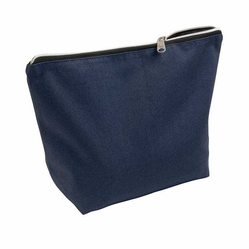 Toaletná taška s klinom z bavlneného plátna laminovaného polyuretánom.Zips a sťahovanie v rovnakej farbe ako taška.Certifikát STANDARD 100 podľa OEKO-TEX® č. CQ 1164/1, IFTH.