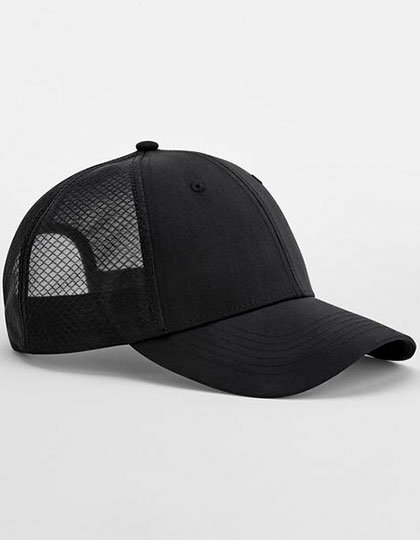 Přední panely: 100 % recyklovaný polyester. Potní páska ze 100 % polyesteru Coolmax®. Větrací očka. 6panelový design. Síťované větrací díly. Předohnutý kšilt. Odtrhávací štítek