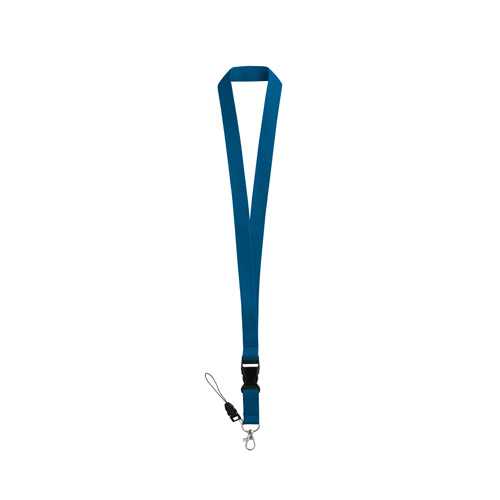Polyesterová šnúrka s kovovou karabínou, odnímateľnou prackou, popruhom na mobilný telefón a bezpečnostným zámkom. 20 x 510 mm