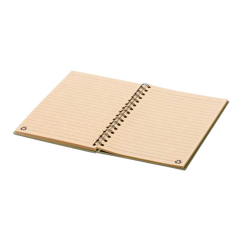 Recyklovaný papier, špirálový zápisník s pevnou väzbou a 80 linajkovými listami, veľkosť A5.