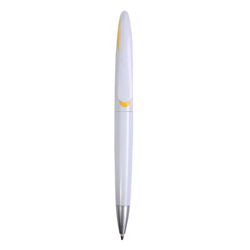 Plastic snap pen with white barrel and curved clip with coloured inside, jumbo refill