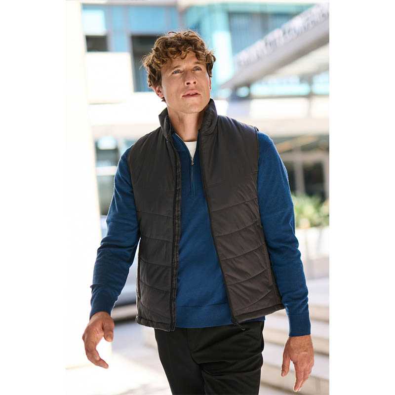 Polyester 300T se softshellovým polyesterovým polstrováním. Odolné proti větru a odpuzující vodu. Přiléhavý střih. 2 velké přední kapsy. Vnitřní kapsa. Elastické lemování průramků. Kvalitní reverzní zipy. Připraveno k výšivce