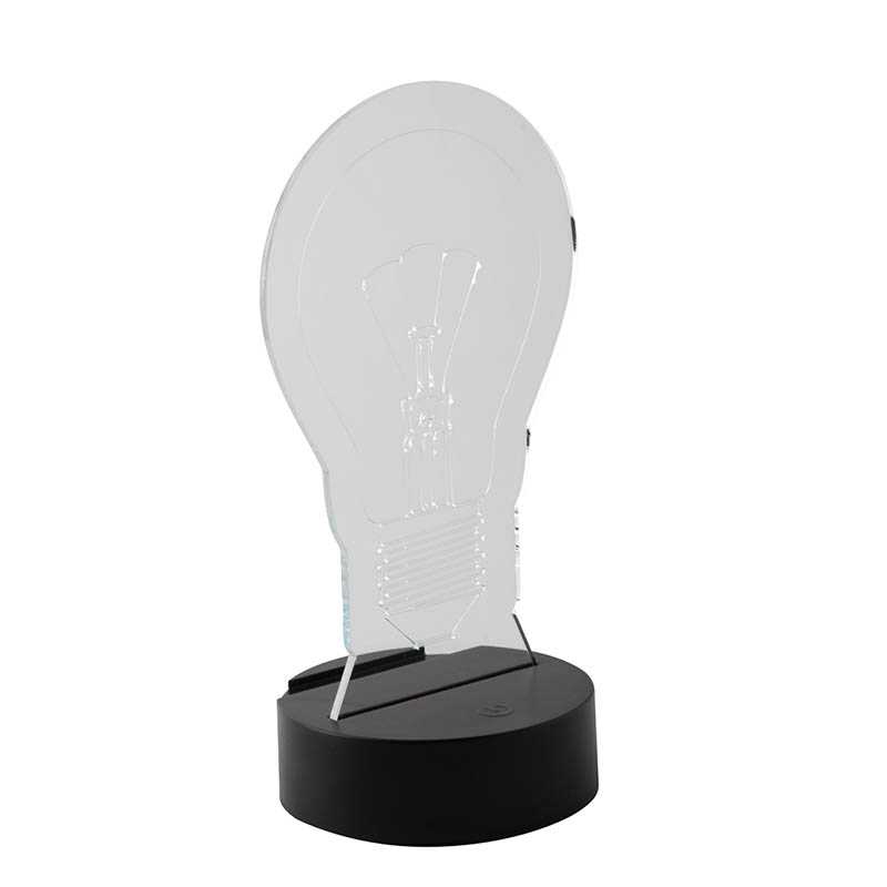 Trofej na zákazku z akrylu s viacfarebným LED svetlom. V jedinečnom tvare s gravírovanou grafikou. Dodávané s 3 AA batériami. Cena zahŕňa laser, nezahŕňa tlačovú prípravu. Min. mn.: 25 ks.