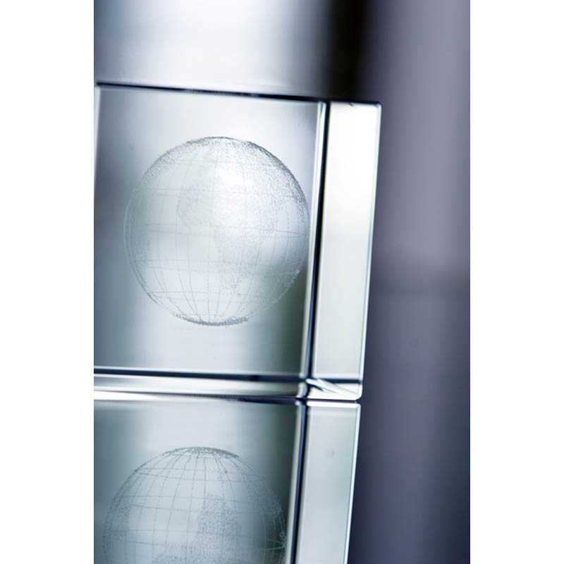 NOVINKA 2025. Earth-shaped crystal ball with laser printing base. Presented in an individual protective case.