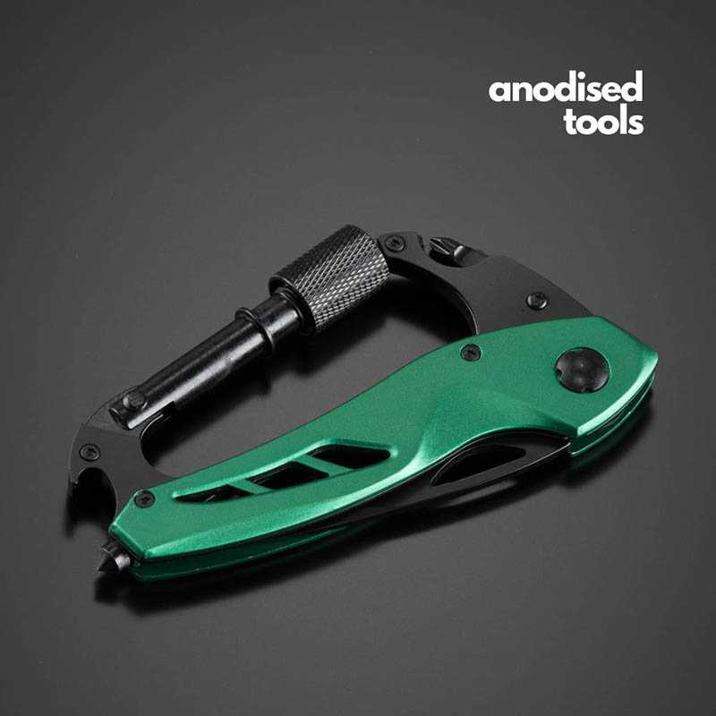 Profesionální a praktický multifunkční nástroj. Základna je vybavena karabinou se zámkem. Dále obsahuje nůž, křížový a plochý šroubovák, otvírák na láhve a rozbíječ skla. Dodatečně obsahuje funkci Safe - zabraňuje zavření nářadí, chrání před zraněním.