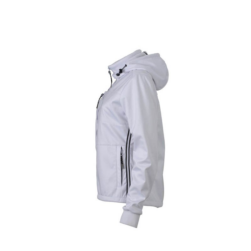 3vrstvový softshell s membránou, ľakho vypasovaný strih, celozapínací reverzný špirálový zips s krytkou brady, odnimateľná kapucňa, lemy rukávov nastaviteľné suchým zipsom, dolný lem na stiahnutie elastickou šnúrkou, vrecká s reverzným špirálovým zipsom,