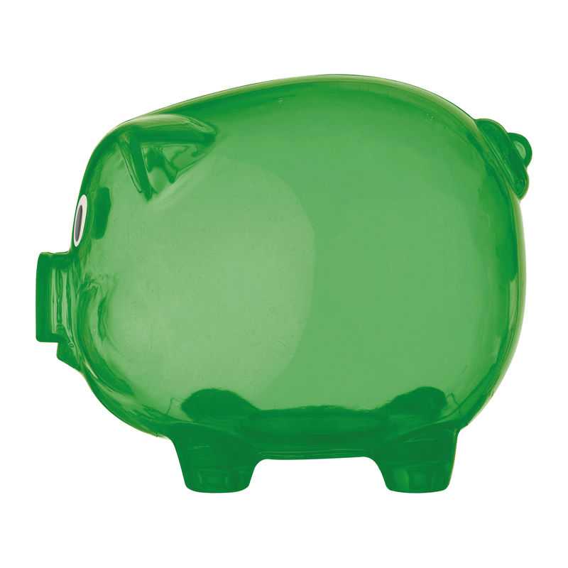 Klasická plastová pokladnička prasiatko, vo veselých priehľadných farbách. Ideálny darček nielen pre deti! Dbajte o Vaše úspory.