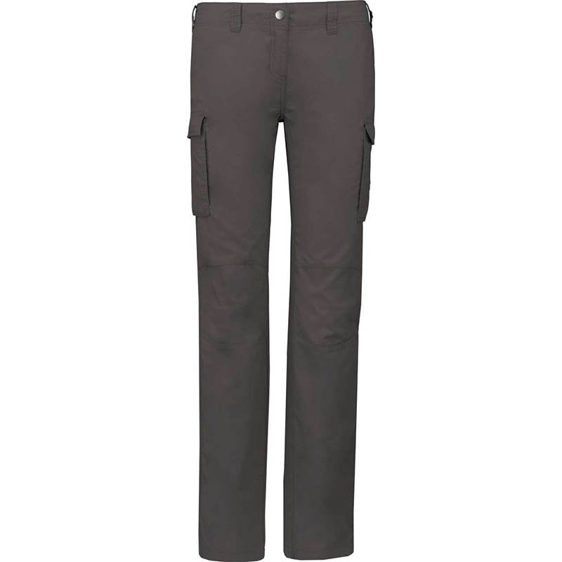 MULTIPOCKETS PANT LADY'S - 98% cotton – 2% elastan - Pre-washed and elasticized fabric - Two front pockets - Two leg-pockets with buttons - One leg-pocket with zip - Two back-pockets with buttons