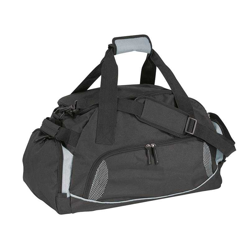 Športová taška z 300D a 1680D s vnútornou podšívkou a spodnou časťou s vystuženou doskou. Taška má 1 prednú kapsu na zips a 2 bočné kapsy: 1 sieťovanú kapsu a ďalšiu kapsu na topánky na zips. Ramenný popruh je nastaviteľný a má vystlanú výstuž. Kapacita je až 35 l. 550 x 300 x 250 mm