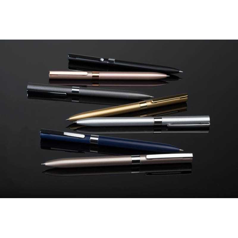 Pero s otočným mechanizmom, šírkou hrotu 1mm, modrým atramentom Dokumental na písanie až 1 200 m. Vyrobené z RCS recyklovaného hliníka. RCS (Recycled Claim Standard) je globálny štandard, ktorý umožňuje overiť použitie recyklovaného materiálu v produkte naprieč celým dodávateľským reťazcom. Celkový podiel recyklátu podľa váhy produktu: 28%.