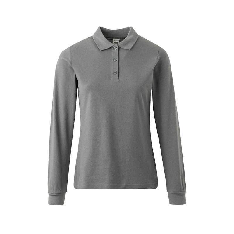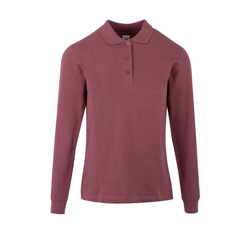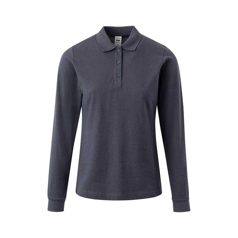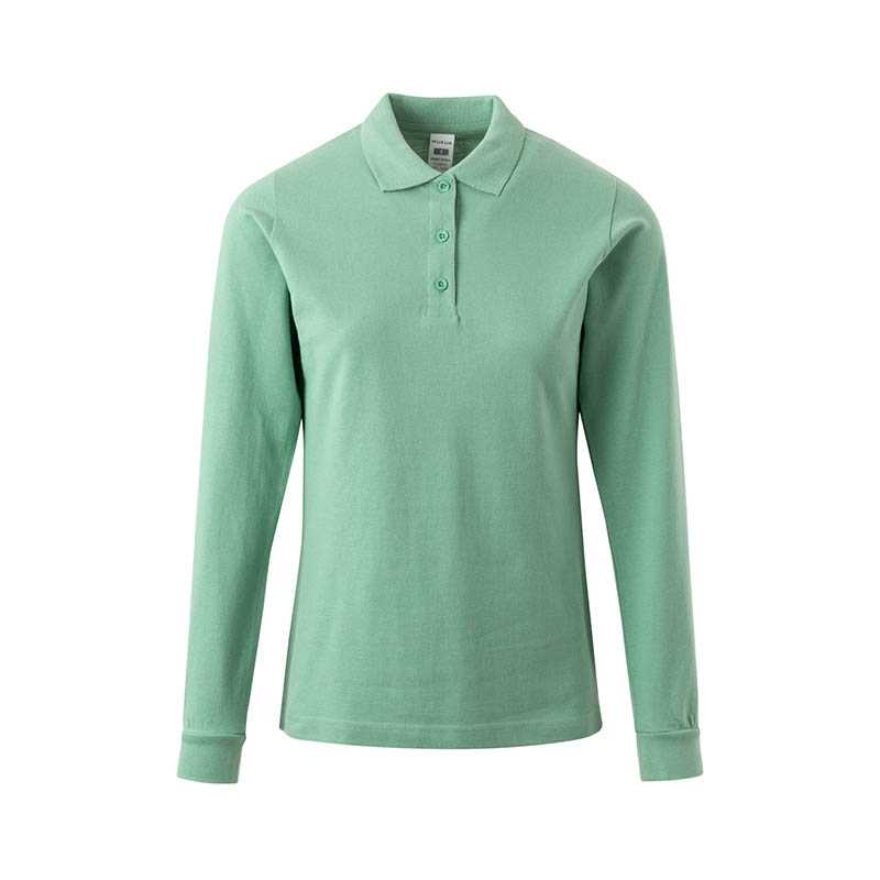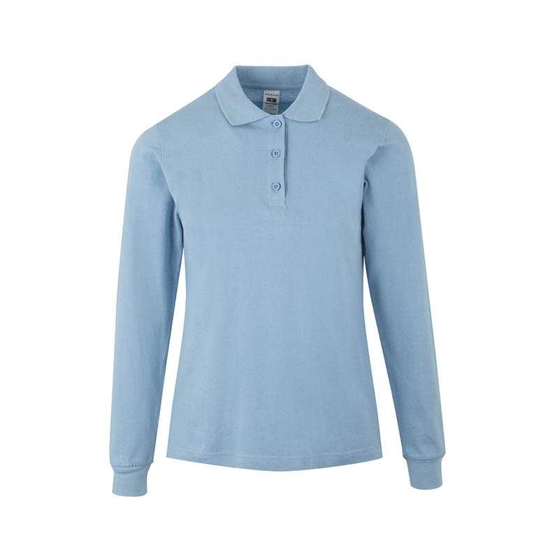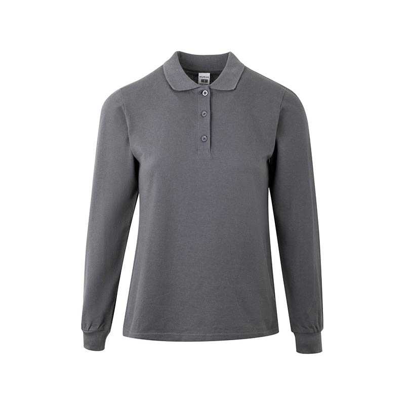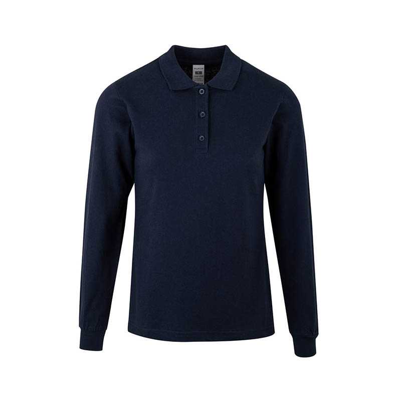WOMEN's long-sleeve Polo. Piqué Fabric. 100% RingSpun pre-shrunk Cotton. 210 g/m2 Placket with 3 buttons. Shoulder-to-shoulder reinforced neck tape to avoid deformation 1x1 rib kni