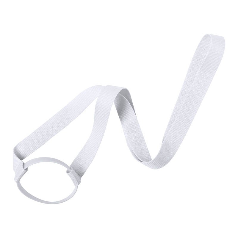Polyesterová šnúrka na krk s držiakom na fľaše a silikónovým krúžkom na fľašu a viečko.