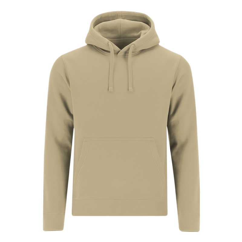60% Cotton, 40% Polyester Brushed Back Fleece. Oversized pullover hoody. Set-in sleeves. Deep ribbed hem and cuffs. Kangaroo front pocket. 2-piece hood, with single jersey lining and twin-needle cover-stitch detail. Functional flat lace drawcord, with stitched eyelets. Single-jersey back neck facing and back neck tape. Twin-needle topstitching at neck and armhole. Tear-out label, for easy re-branding.