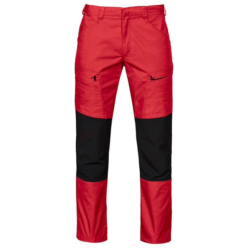 Item Number: 642520-58 Product Fabrics: 65% polyester, 35% cotton Description: Waistpants with great flexibility. Stretch fabric across seat, crotch and knees area to provide extra freedom of movement. Leg pockets with zipper. Back pockets with flap. Attachment for holster pockets. Hidden button at front.